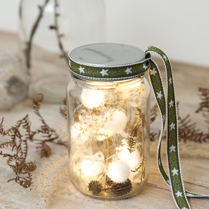 Produktinformationen "Befüllbares LED-Glas "Pompons" mit Schraubverschluss 85306"