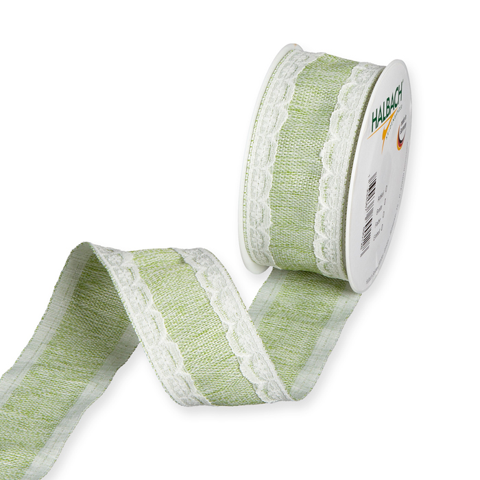 meliertes Band in Baumwoll-Optik mit aufgenähter Spitze