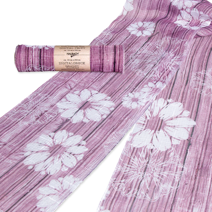 Produktinformationen "Dekostoff / Tischband "Blüten/Blätter" / Digital-Motivdruck 74742"