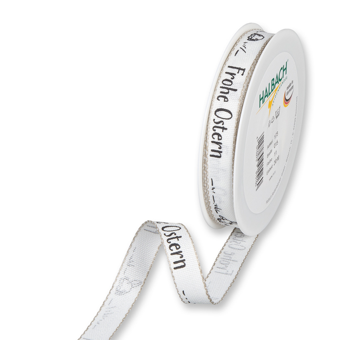 Produktinformationen "Druckband "Frohe Ostern" mit Leinenkanten / meliert 173"