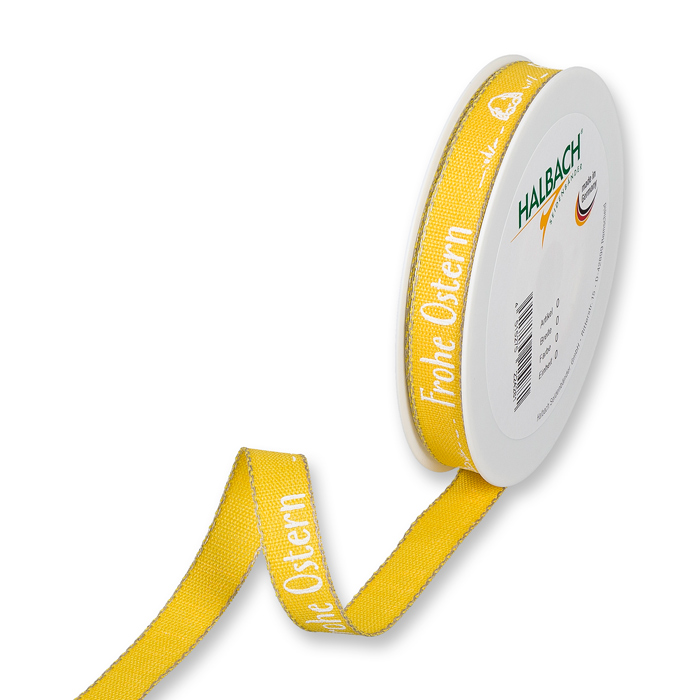 Produktinformationen "Druckband "Frohe Ostern" mit Leinenkanten / meliert 173"