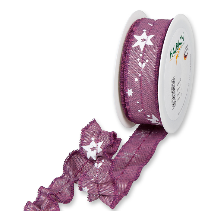 Produktinformationen "Druckband "Sterne" / Schlaufenkanten / raffbar durch eingewebte Kordel 609"