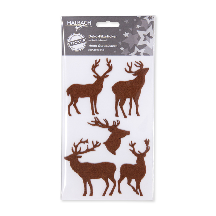 Produktinformationen "Filz-Sortiment "Hirsche" selbstklebend 5 Formen im Set height 60-80mm 11881"