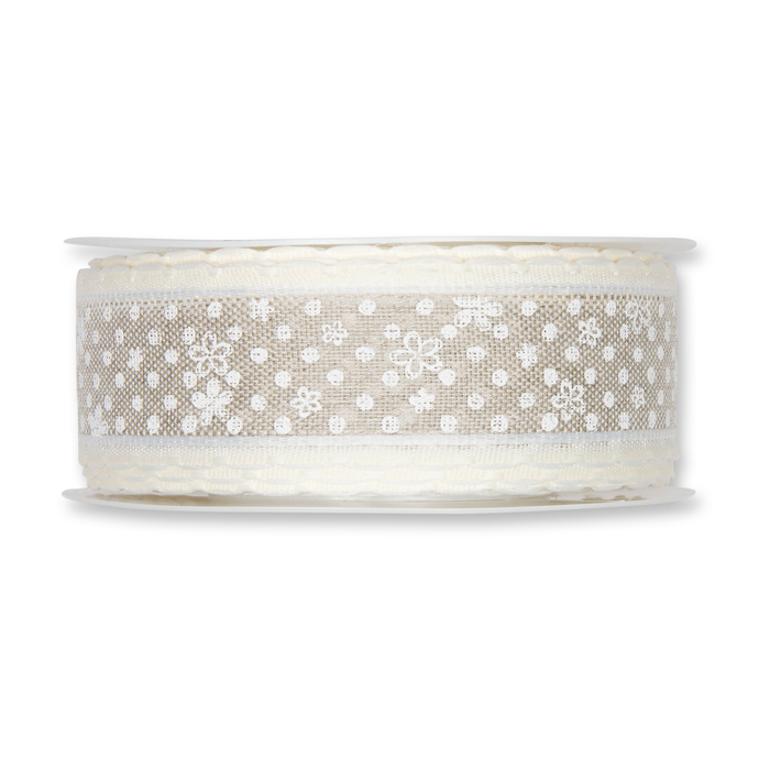 Produktinformationen "Leinen-Druckband "Punkte und Blümchen" 847"