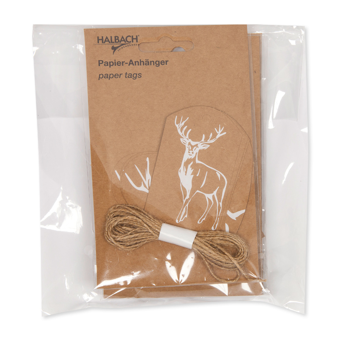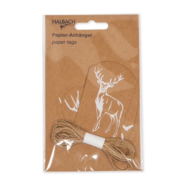 Produktinformationen "Papier-Anhänger "Hirsch" mit ca. 3 m Jute-Kordel 2 Formen im Set 19827"