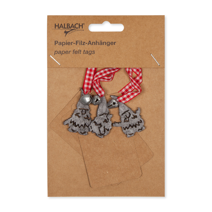 Produktinformationen "Papier-Hänger mit Filzwichtel, Metall-Glöckchen und Karoband 3 Formen im Set 62311"