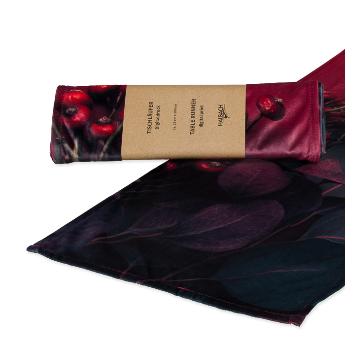 Produktinformationen "Samt-Tischläufer "Eucalyptus und Beeren" / "Digital Motivdruck 74850"