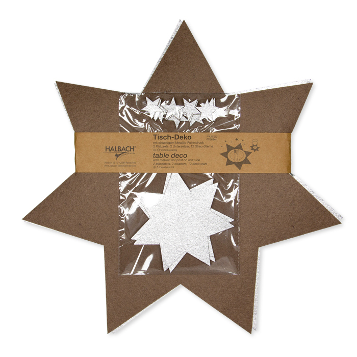 Produktinformationen "Tischdeko-Set "Metallic-Sterne" mit 2 Tischsets, 2 Untersetzern und 12 Streudeko-Sternenabwaschbar 61987"